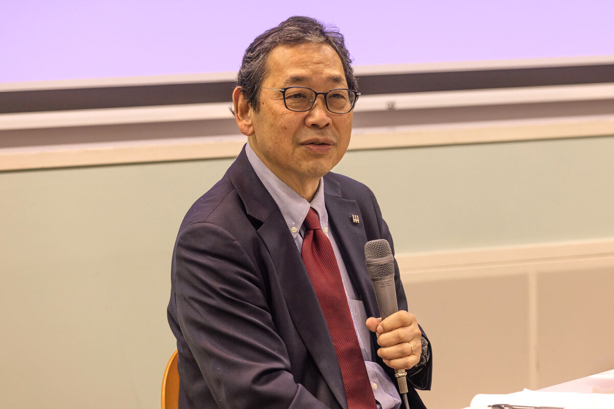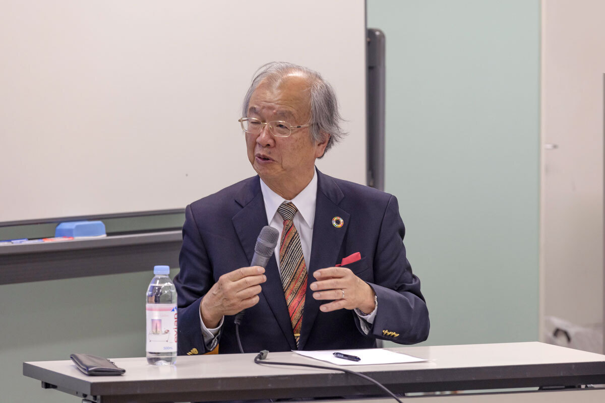 コロナ禍では、先進7か国の中で日本が、感染率・死亡率も最も低かった。玄関で靴を脱ぐ習慣、水道水の塩素消毒、マスクの文化。江戸時代から続く清潔文化が、科学だけでは説明できない防御力を発揮した例を紹介されました。河田先生はこの例を引いて、科学の成果と政治を連動させる「文明」と、社会慣習の成熟をめざす「文化」を組み合わせて一緒にしていく必要があると述べられました。